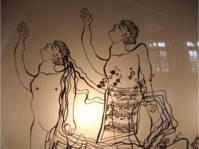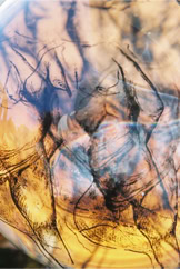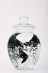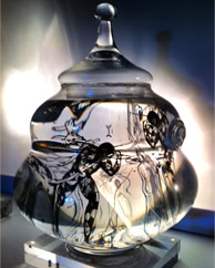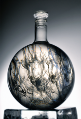 Les dessins peuvent se mouvoir si on déplace la carafe; ils reprennent ensuite leur place.