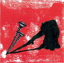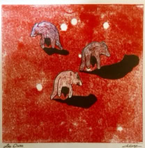 Monotype et huile sur papier marouflé bois