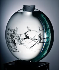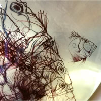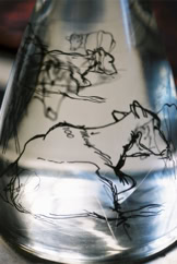 Les dessins peuvent se mouvoir si on déplace la carafe; ils reprennent ensuite leur place.