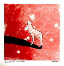 Monotype et huile sur papier marouflé bois