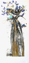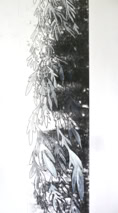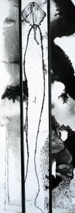 Encre de chine et fleurs de polyester s’échappant du tableau