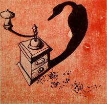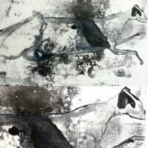 Monotype, encre de chine, huile